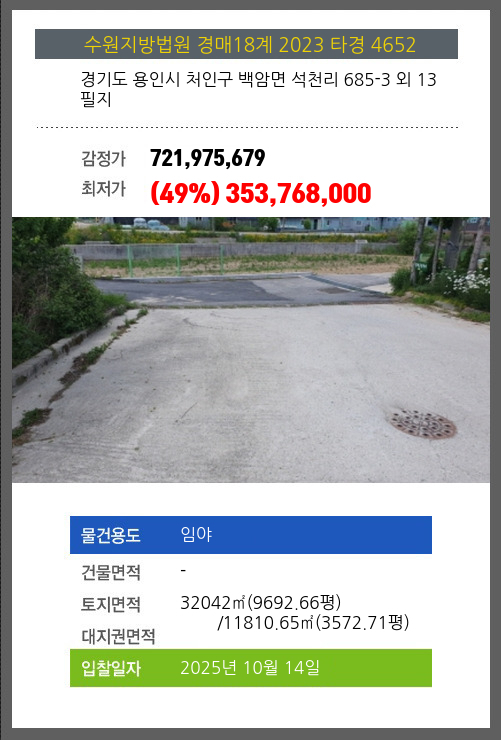 본건은 경기도 용인시 처인구 백암면 석천리 685-3 외 13필지
