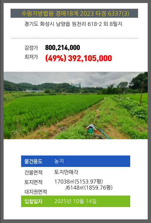화성농지경매 화성시 남양읍 원천리 618-2 외 8필지 №2023 타경 6337(3)