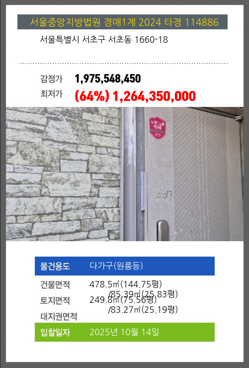 서초다가구(원룸등)경매 서초구 서초동 1660-18 №2024 타경 114886
