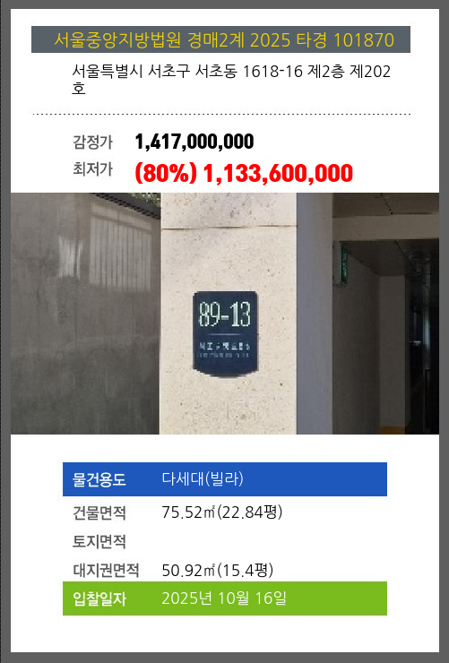 본건은 서울특별시 서초구 서초동 1618-16 제2층 제202호