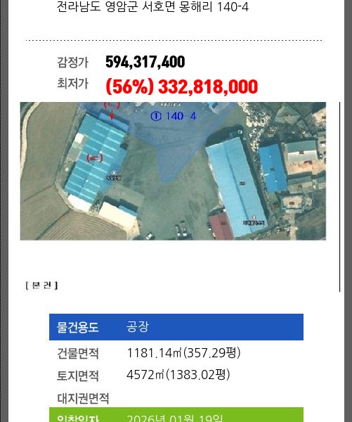 | 소재지 | [지번] 전라남도 함평군 대동면 백호리 1065-4 주건축물제1동외 1필지 [도로명 주소] 전라남도 함평군 대동면 동함평산단길 137 주건축물제1동외 1필지 |