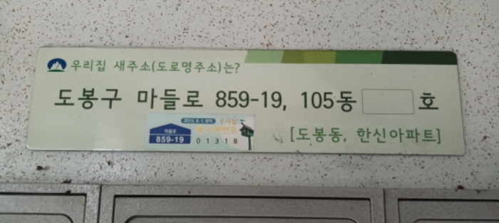 | 소재지 | [지번] 서울특별시 도봉구 도봉동 30-1 도봉한신아파트 제105동 제15층 제1506호 [도로명 주소] 서울특별시 도봉구 마들로 859-19 도봉한신아파트 제105동 제15층 제1506호 |