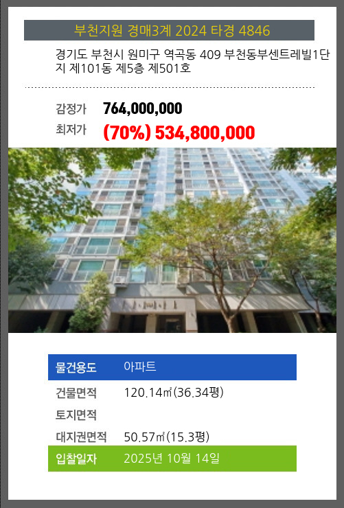본건은 경기도 부천시 원미구 역곡동 409 부천동부센트레빌1단지 제101동 제5층 제501호