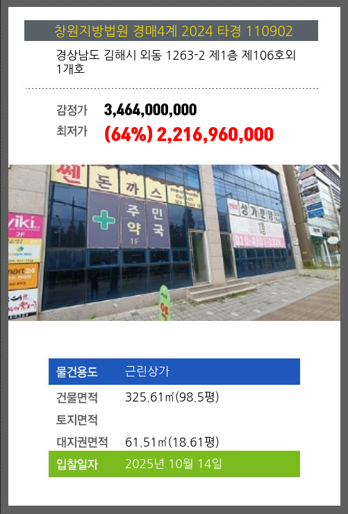 본건은 경상남도 김해시 외동 1263-2 제1층 제106호외 1개호