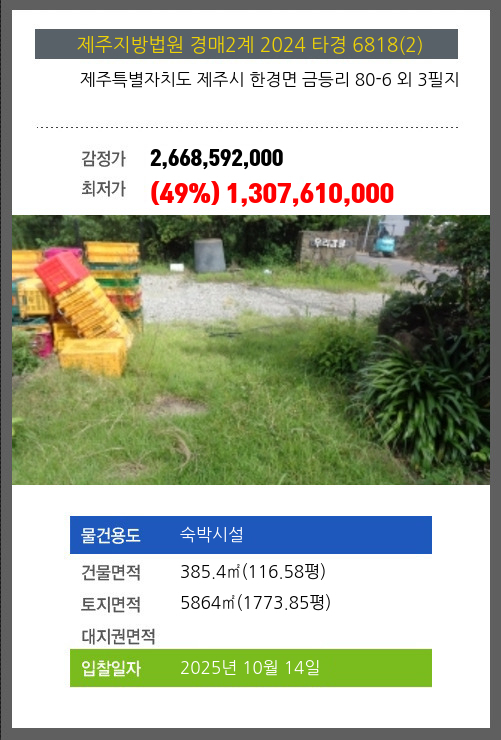 제주숙박시설경매 제주시 한경면 금등리 80-6 외 3필지 №2024 타경 6818(2)