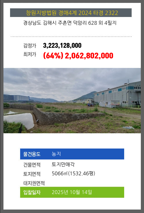 | 소재지 | [지번] 경상남도 김해시 주촌면 덕암리 628 외 4필지 | ||||