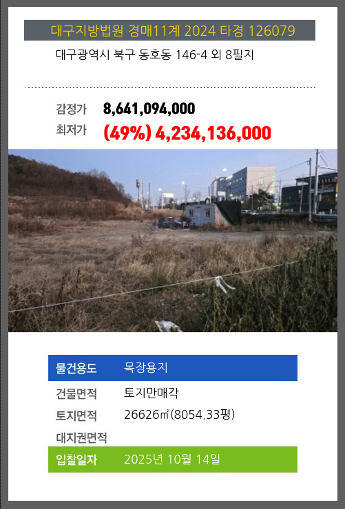 북목장용지경매 북구 동호동 146-4 외 8필지 №2024 타경 126079