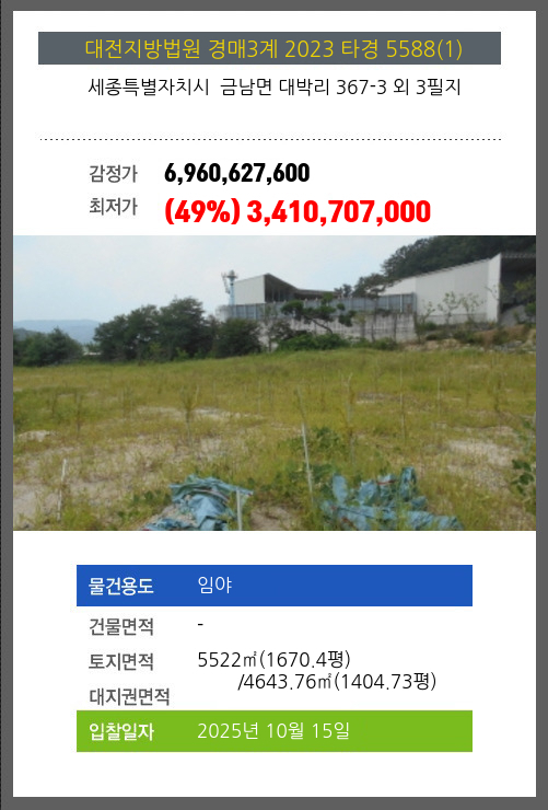 임야경매 금남면 대박리 367-3 외 3필지 №2023 타경 5588(1)