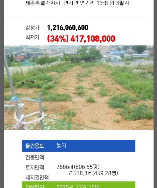 소재지 [지번] 세종특별자치시 금남면 대박리 367-3 외 3필지