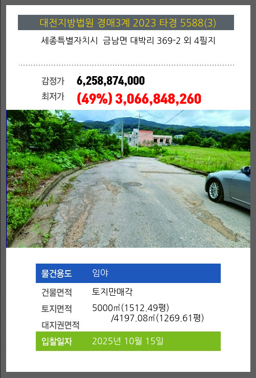 | 용도 | 임야 | 채권자 | 세** | 감정가 | 6,258,874,000 |