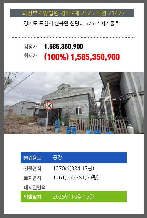 포천공장경매 포천시 신북면 신평리 679-2 제가동호 №2025 타경 71477