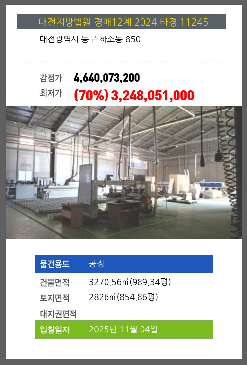 동공장경매 동구 하소동 850 №2024 타경 11245