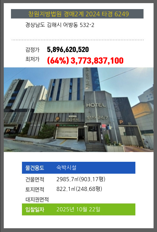 김해숙박시설경매 김해시 어방동 532-2 №2024 타경 6249