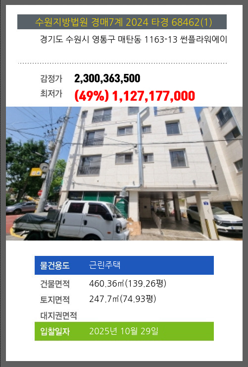 본건은 경기도 수원시 영통구 매탄동 1163-13 썬플라워에이