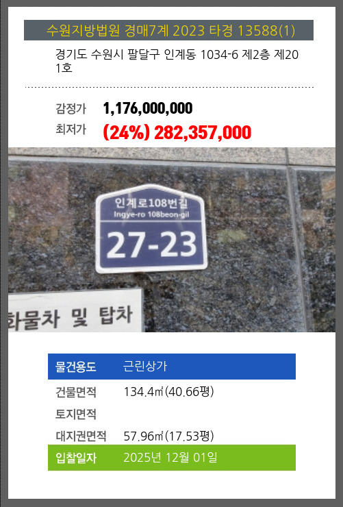 본건은 경기도 수원시 팔달구 인계동 1034-6 제2층 제201호