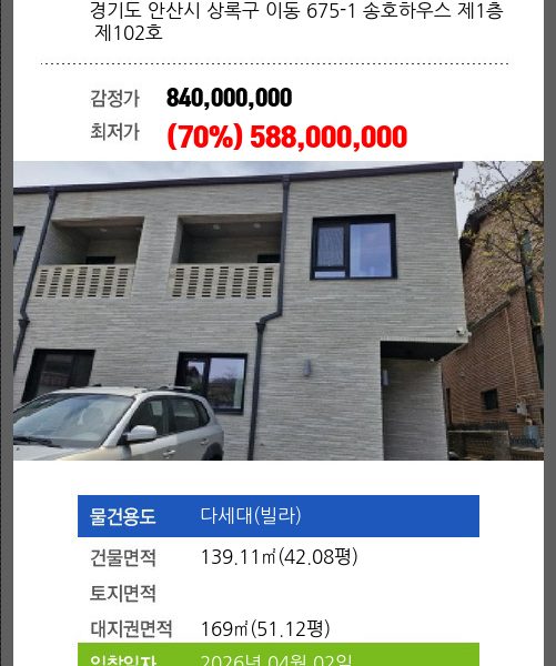 | 건물면적 | 48.51㎡ (14.67평) | 채무자 | 배** | 최저가 | (34%) 370,440,000 |