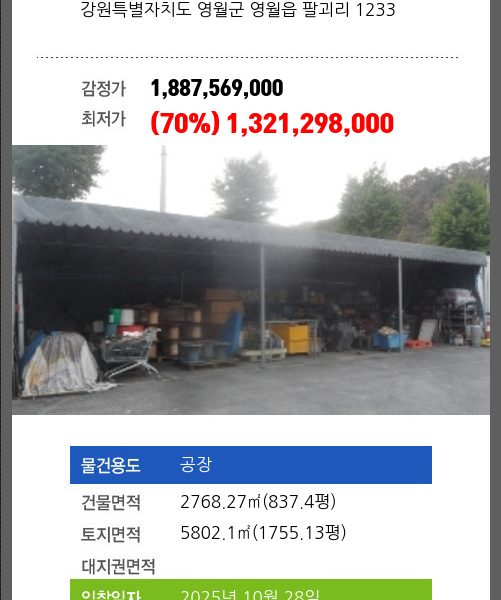| 신건 | 2025-10-14 | 937,890,000 | 유찰 |