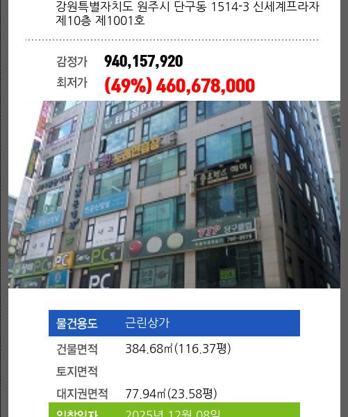 건물면적 2279.18㎡ (689.45평) 채무자 강** 최저가 (49%) 1,056,291,000