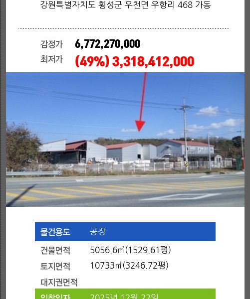 소재지 [지번] 강원특별자치도 횡성군 우천면 백달리 333-1 외 2필지
