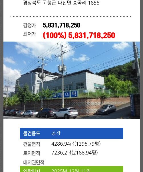 | 신건 | 2025-09-11 | 601,000,000 | 유찰 |