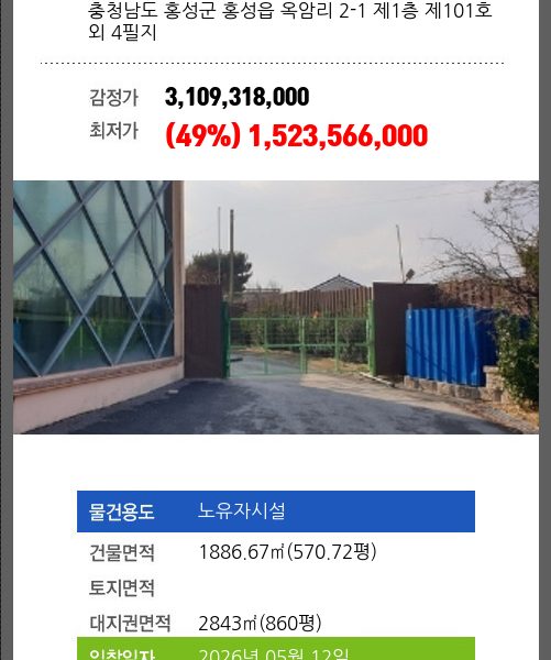 | 용도 | 공장 | 채권자 | 중** | 감정가 | 5,937,644,560 |
