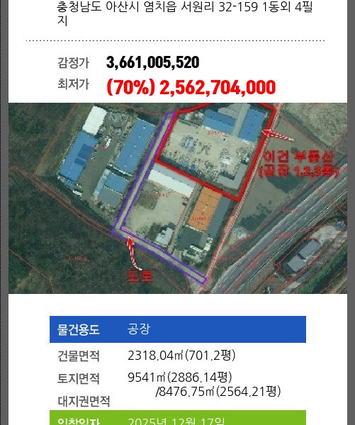 | 신건 | 2025-11-12 | 3,699,004,400 | 유찰 |