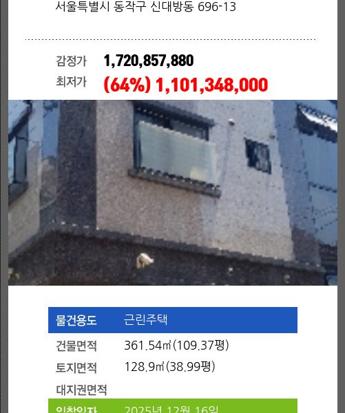 건물면적 334.16㎡ (101.08평) 채무자 강** 최저가 (64%) 1,174,493,000
