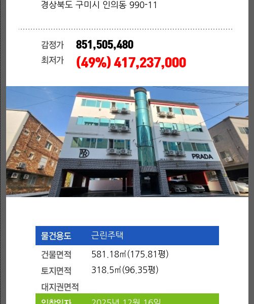 | 소재지 | [지번] 경상북도 구미시 인의동 642-24 외 2필지 [도로명 주소] 경상북도 구미시 인동11길 39 외 2필지 |
