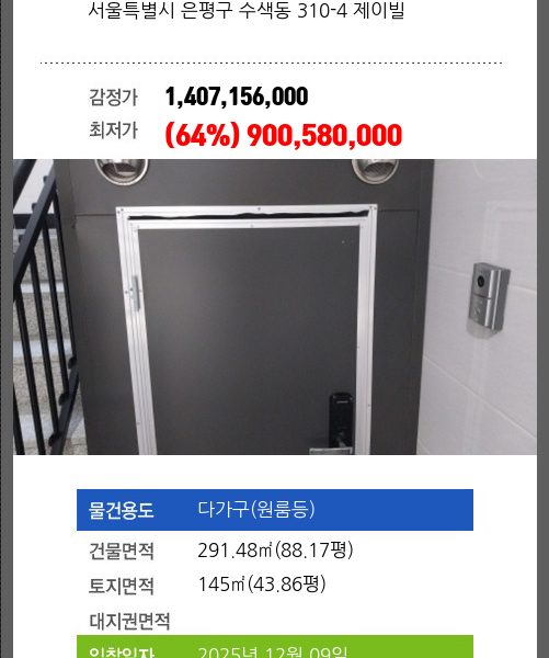 | 매각대상 | 공시가격2~3억 | 경매종류 | 강제경매 | 사건접수일 | 2025-01-14 |