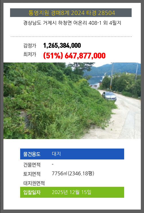 본건은 경상남도 거제시 하청면 어온리 408-1 외 4필지