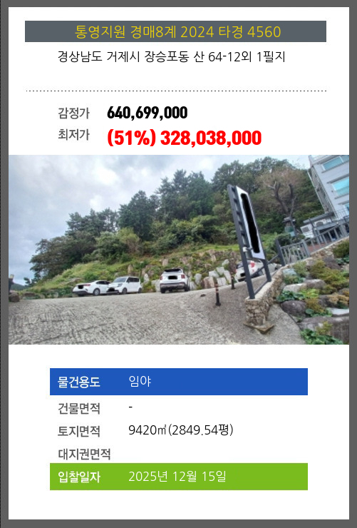 | 소재지 | [지번] 경상남도 거제시 장승포동 산 64-12외 1필지 | ||||