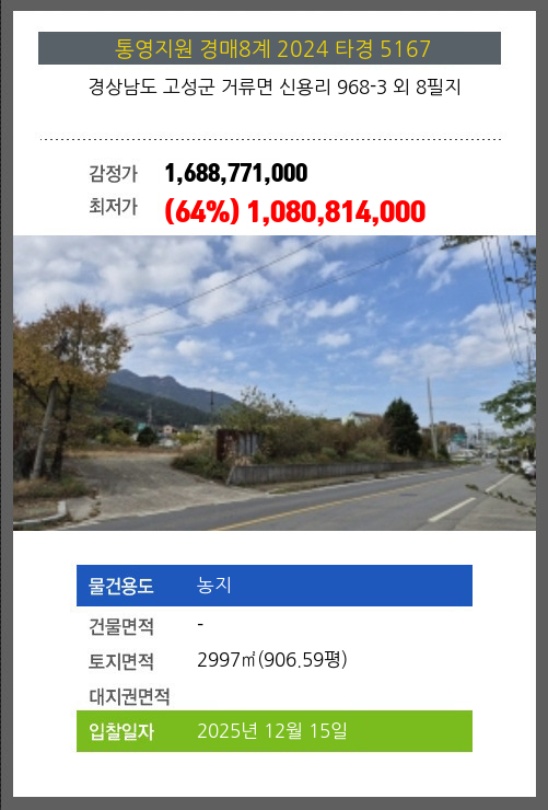 고성농지경매 고성군 거류면 신용리 968-3 외 8필지 №2024 타경 5167
