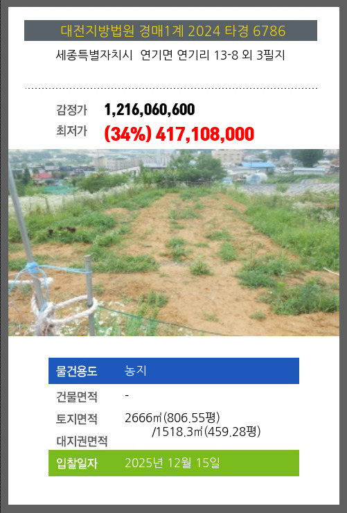 본건은 세종특별자치시 연기면 연기리 13-8 외 3필지
