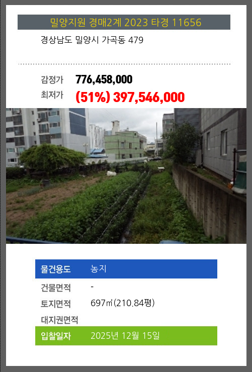 밀양농지경매 밀양시 가곡동 479 №2023 타경 11656