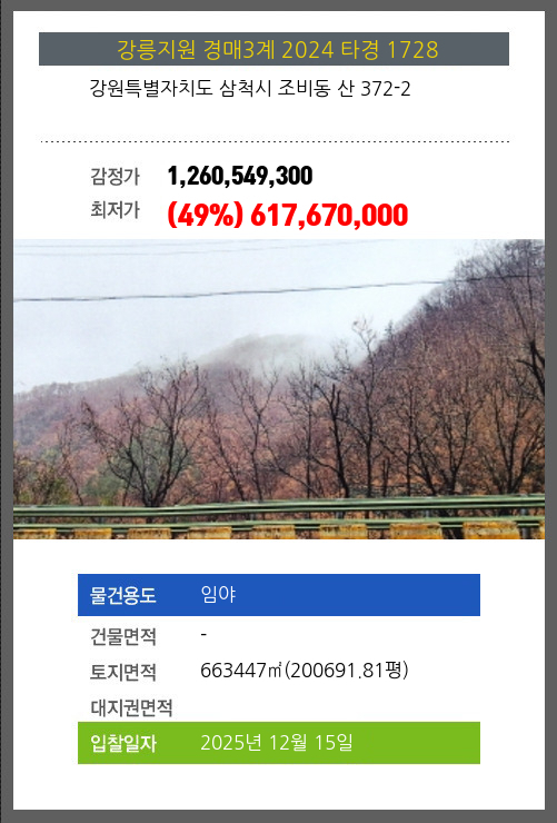 삼척임야경매 삼척시 조비동 산 372-2 №2024 타경 1728