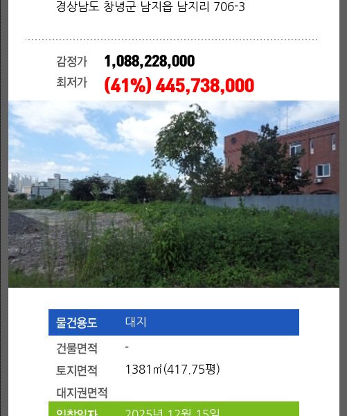 | 신건 | 2025-09-22 | 424,060,000 | 유찰 |