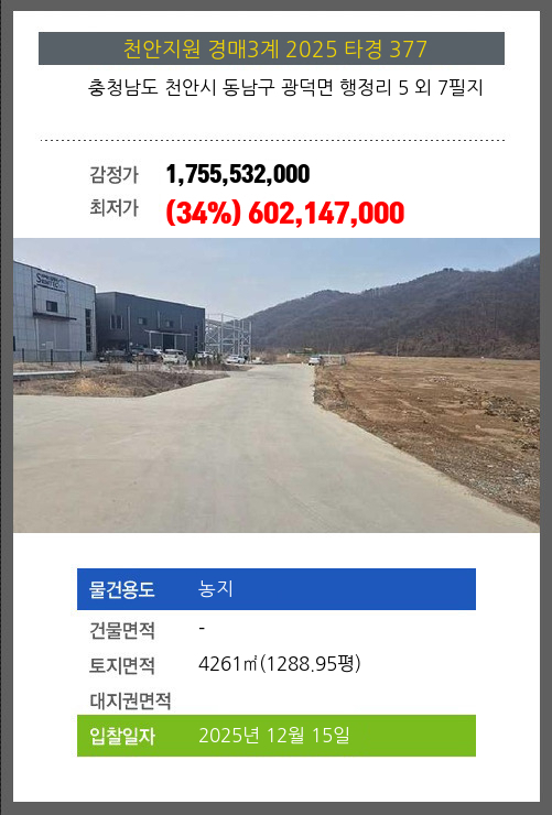 천안농지경매 천안시 동남구 광덕면 행정리 5 외 7필지 №2025 타경 377