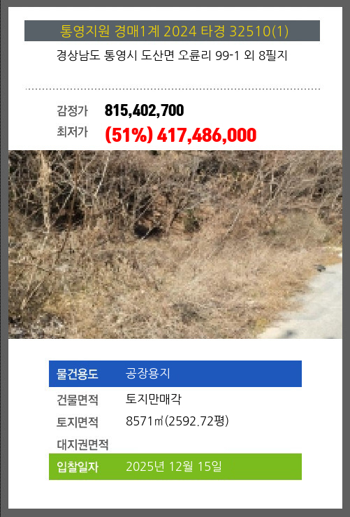통영공장용지경매 통영시 도산면 오륜리 99-1 외 8필지 №2024 타경 32510(1)