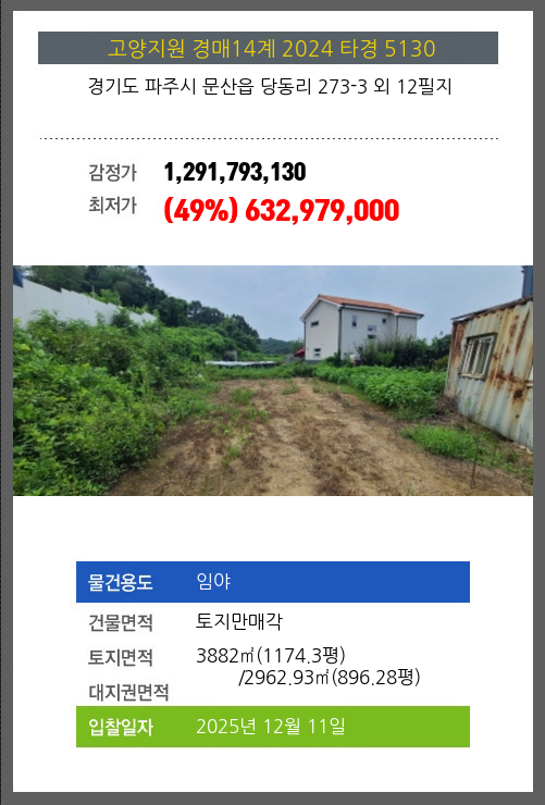 | 소재지 | [지번] 경기도 파주시 문산읍 당동리 273-3 외 12필지 | ||||
