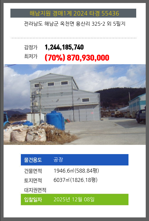 본건은 전라남도 해남군 옥천면 용산리 325-2 외 5필지