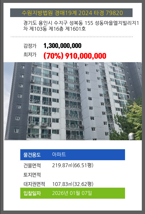 본건은 경기도 용인시 수지구 성복동 155 성동마을엘지빌리지1차 제103동 제16층 제1601호