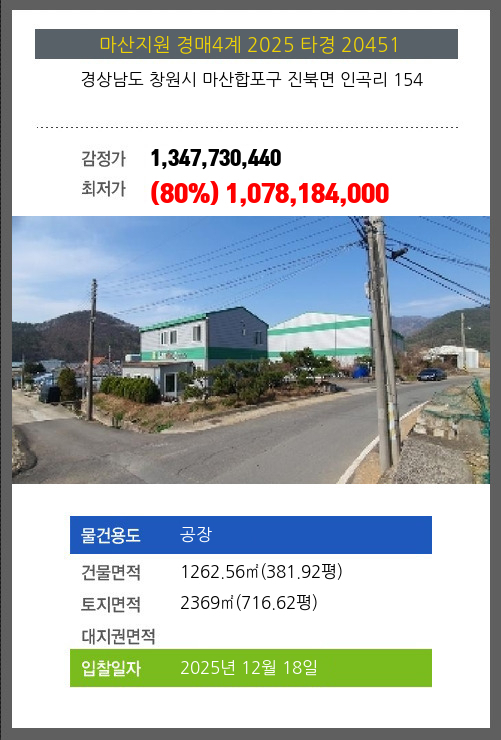 창원공장경매 창원시 마산합포구 진북면 인곡리 154 №2025 타경 20451