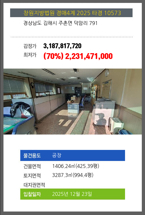 | 용도 | 공장 | 채권자 | 중** | 감정가 | 3,187,817,720 |