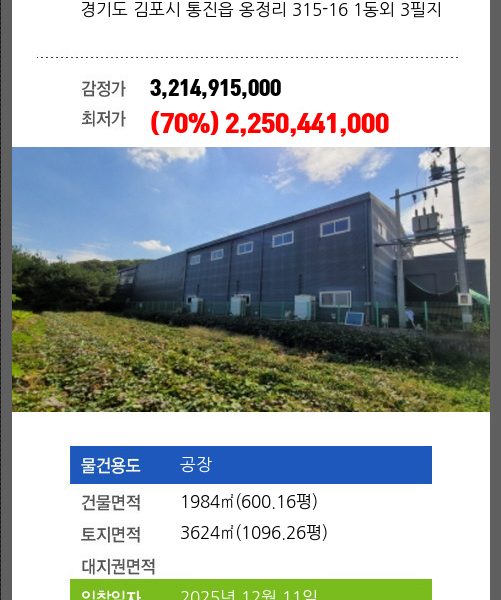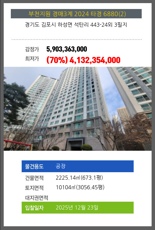 김포공장경매 김포시 하성면 석탄리 443-24외 3필지 №2024 타경 6880(2)
