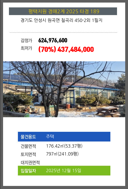 안성주택경매 안성시 원곡면 칠곡리 450-2외 1필지 №2025 타경 189