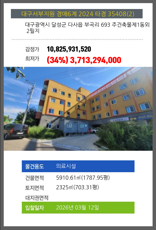 달성의료시설경매 달성군 다사읍 부곡리 693 주건축물제1동외 2필지 №2024 타경 35408(2)