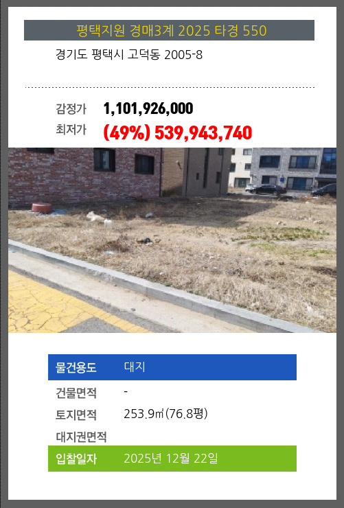 평택대지경매 평택시 고덕동 2005-8 №2025 타경 550