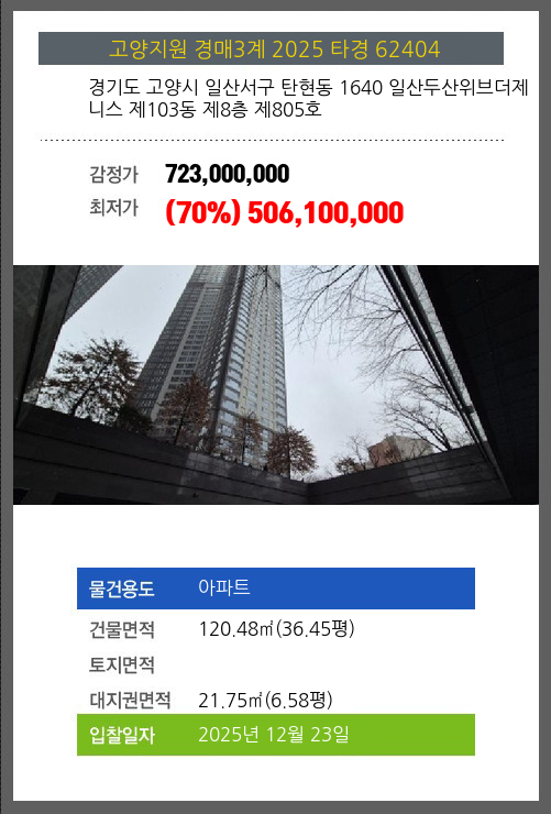 본건은 경기도 고양시 일산서구 탄현동 1640 일산두산위브더제니스 제103동 제8층 제805호