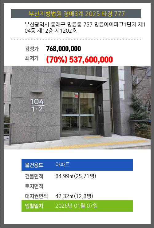 본건은 부산광역시 동래구 명륜동 757 명륜아이파크1단지 제104동 제12층 제1202호