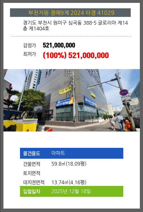 본건은 경기도 부천시 원미구 심곡동 388-5 글로리아 제14층 제1404호